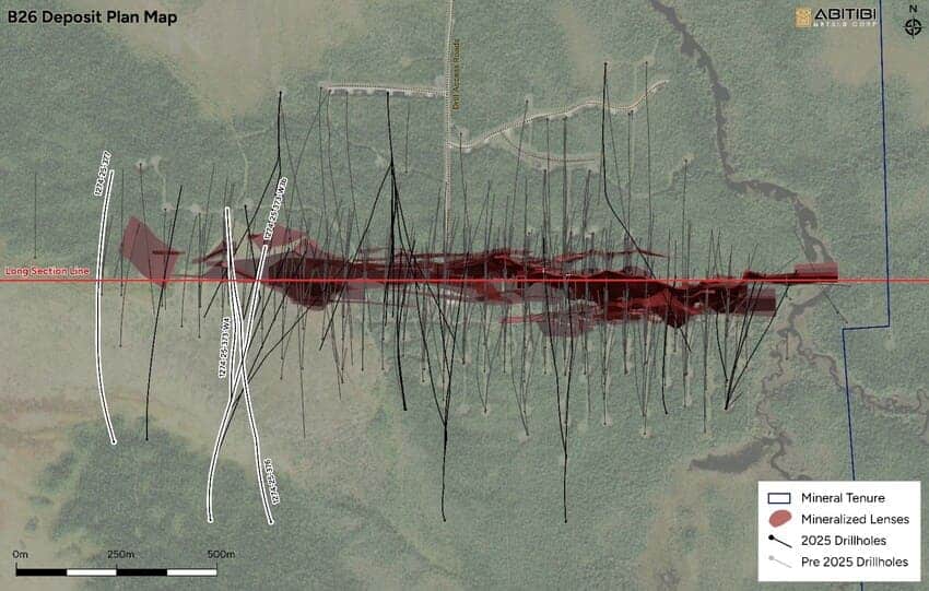 The company’s flagship B26 Polymetallic project, in a joint venture with SOQUEM (80% Abitibi, 20% SOQUEM), hosts a substantial and growing resource base:
