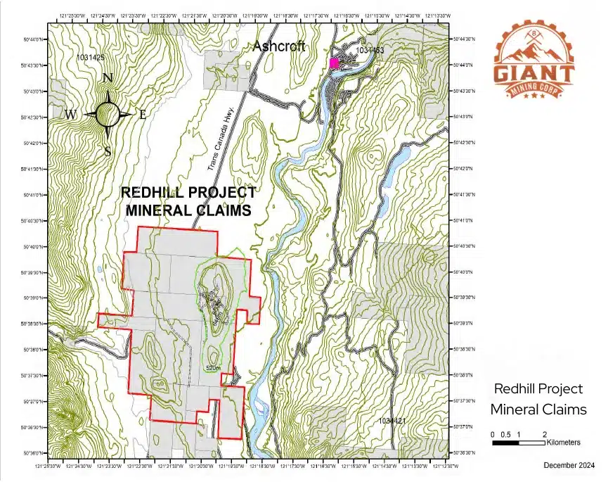 Giant Mining Corp. is pleased to announce that it has entered into an option agreement dated April 21, 2026 (the “Agreement”) with Homegold Resources Ltd., Johan Thom Shearer Ltd., and Bessor Minerals Inc. (collectively, the “Vendors”), pursuant to which the Company has the right to earn up to a 100% interest in the Redhill Property (the “Redhill” or the “Property”), located in the Ashcroft area of British Columbia within the Kamloops Mining District.