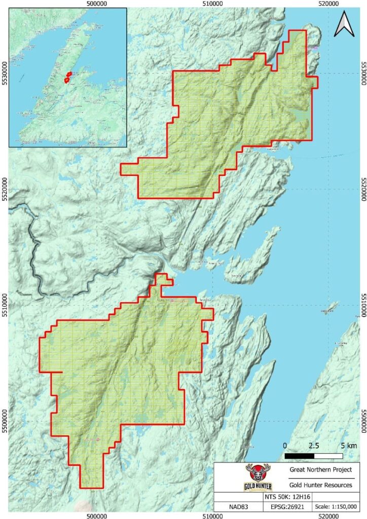 Gold Hunter Resources Inc. is pleased to announce the successful completion of a VTEM™ and Magnetic airborne geophysical survey over its entire 26,237-hectare Great Northern Project, the Company’s flagship asset in Newfoundland. The survey was completed by Geotech Ltd. and represents the first modern, consistent geophysical dataset across the consolidated property.
