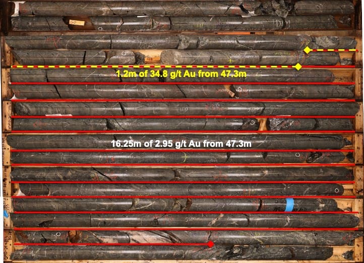 - 2.0m of 8.61 g/t Au from 27.0m and