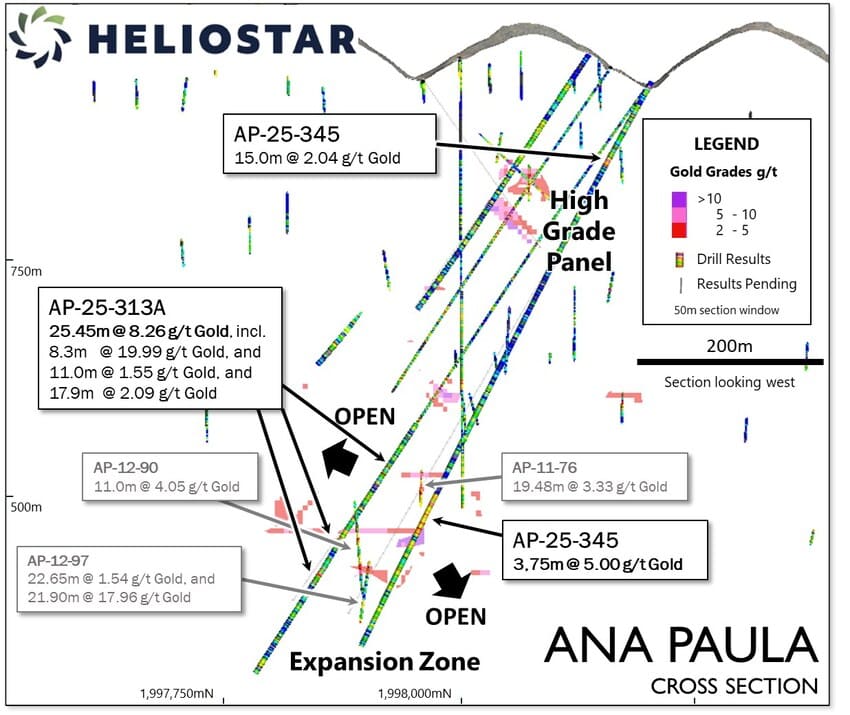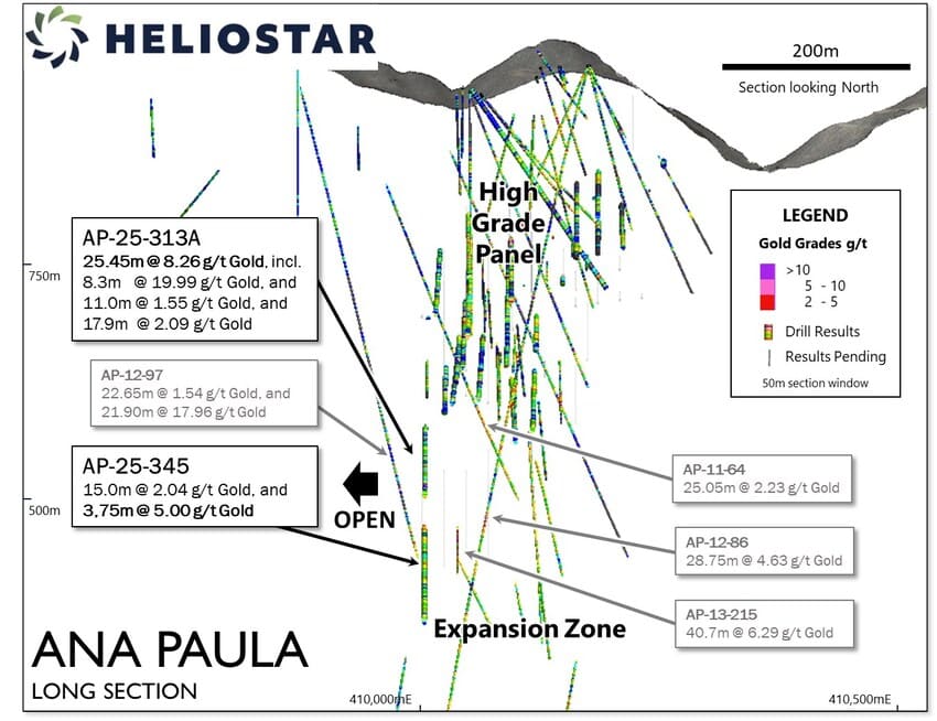 “During the reserve conversion drill program at Ana Paula, we decided to push a hole deeper to test for potential step-outs of the Expansion Zone. Hole AP-25-313A represents a 70 m step out from the nearest intercept supporting ore stopes and returned a strong interval of 25.45 m grading 8.26 grams per tonne gold. This is an exciting result from the Company’s first hole beneath the High Grade Panel and based on this success, we have extended a number of additional holes deeper at Ana Paula. Two results from the Expansion Zone are reported today with the remaining assay results pending.”