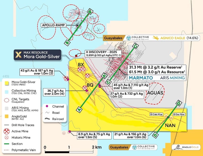 “We continue the Mora campaign, as Collective Mining continues to advance their Guayabales project drilling on trend to the Mora northern boundary and the NW end of the 5,000m Mora mineralized corridor and Aris Mining recently reported on increasing the Marmato annual gold production to 200,000ozs by 2026YE. Concurrently, we continue to work toward filing the PTO (Mining Technical Work Plan) which permits small-scale production and drilling”